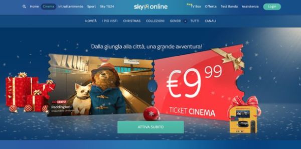 Un altro servizio che va preso sicuramente in considerazione è Sky Online, il quale ospita più di 750 film da vedere su Internet, oltre che una vasta selezione di serie TV e documentari. Il suo principale pregio è che permette di accedere a tutti i contenuti di Sky Italia (compresi i canali del pacchetto Sky Cinema in diretta streaming) senza sottoscrivere abbonamenti alla pay TV satellitare, senza avere vincoli contrattuali (si può disdire in qualsiasi momento senza pagare penali) e senza installare la parabola. I principali difetti di questo servizio, invece, sono rappresentati dal prezzo superiore alla concorrenza e alla definizione dello streaming (che è SD, arriva a massimo 576p). Sky Online può essere utilizzato da PC, tablet, Smart TV, console per videogiochi e da un set-top box proprietario denominato Sky Online TV Box. I nuovi clienti possono provare il pacchetto Cinema o il pacchetto Intrattenimento del servizio gratis per 30 giorni, dopodiché si deve decidere se rinnovare la sottoscrizione (quella per il ticket Cinema costa 9,99 euro/mese), se cambiarlo o se associarlo ad altri pacchetti (es. quello Intrattenimento che comprende le serie TV per 9,99 euro/mese o quello Calcio che invece costa 19,99 euro/mese). Per maggiori info a riguardo consulta il mio tutorial su come vedere Sky Online in cui ti ho parlato dettagliatamente di questo servizio.