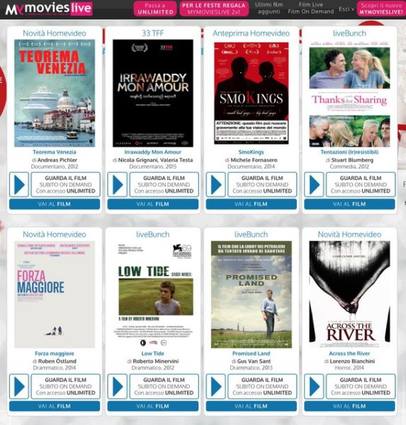 La versione a pagamento di MyMovies Live, invece, funziona come un tradizionale servizio di video on-demand: ci si collega in qualsiasi momento della giornata e si possono vedere i film senza il timore che i posti in "sala" siano finiti. I suoi prezzi partono da 1,99 euro/settimana.
