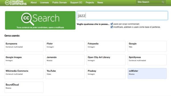 Se stai cercando della musica gratis MP3 per aggiungere una colonna sonora a un tuo video o per altri progetti, personali o commerciali che siano, fai un "salto" sul motore di ricerca di Creative Commons che, come largamente intuibile, consente di trovare materiale audio distribuito sotto licenza Creative Commons. Questo significa che i brani trovati tramite il servizio possono essere scaricati gratuitamente in maniera legale e - se la licenza lo prevede esplicitamente - anche modificati e utilizzati per scopi commerciali.