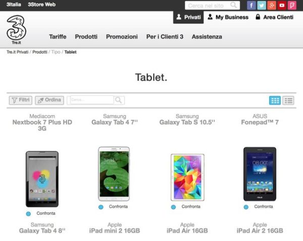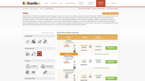 Per avere una panoramica più ampia sulle offerte tablet disponibili attualmente sul mercato, consulta il sito Internet SOSTariffe che permette di comparare i piani di tutti i principali operatori italiani e scoprire in dettaglio i loro prezzi (nonché le loro caratteristiche).