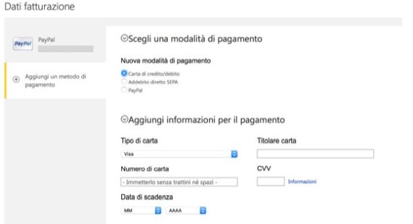 Nella pagina che si apre, esegui l'accesso al tuo account Microsoft (oppure creane uno seguendo le indicazioni presenti nel mio tutorial su come creare un account Microsoft), clicca sul pulsante Accedi e aggiungi un metodo di pagamento da associare al tuo account cliccando sull'apposita voce che si trova nella barra laterale di sinistra.