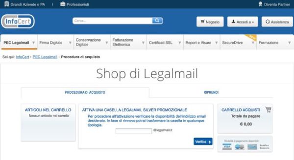 Tra le offerte di posta certificata più interessanti per i liberi professionisti c'è PEC Silver di LegalMail che comprende 8GB di spazio, notifiche via SMS, archivio di sicurezza e accesso da dispositivi mobili. È gratis per i primi 6 mesi e poi costa 39 euro + IVA all'anno.