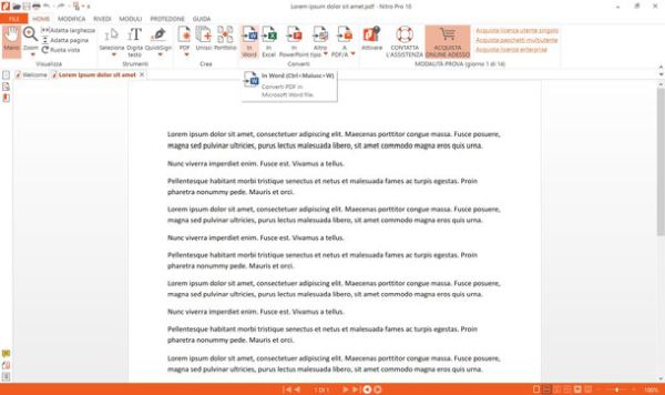 Nitro Pro è la versione a pagamento di Nitro Reader, un ottimo lettore di file PDF per Windows che ti ho consigliato in diverse circostanze qui sul blog. Include numerose funzioni extra rispetto alla versione free, tra cui la possibilità di convertire PDF in Word preservando l'aspetto originale dei documenti e convertendo i PDF digitalizzati come immagini in testi modificabili.