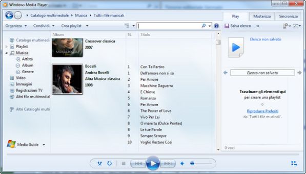Ha davvero bisogno di presentazioni? Windows Media Player è il lettore multimediale integrato in Windows e nelle sue ultime versioni si è rivelato un'ottima soluzione per ascoltare musica, nonché per organizzare la propria libreria musicale con efficacia (scarica copertine e informazioni da Internet automaticamente), rippare CD audio sul PC ed ascoltare radio online.