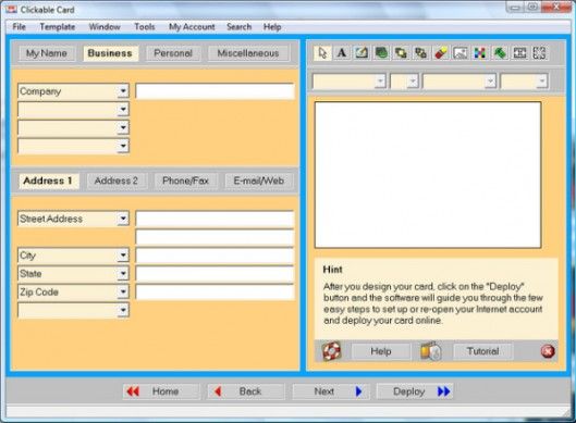 Purtroppo non ha un'interfaccia molto curata ed è in lingua inglese, ma permette di creare biglietti da visita personalizzabili in ogni loro aspetto con scritte e immagini inseribili liberamente. Scarica da qui.
