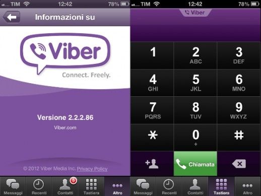 Viber è una popolarissima app per smartphone che permette di effettuare chiamate gratis attraverso Internet tramite la quale è possibile comunicare con tutti gli utenti che usano Viber gratuitamente, in maniera indipendente dalla loro posizione geografica e dal dispositivo utilizzato per telefonare. È compatibile con iPhone, Android, Windows Phone, BlackBerry e telefoni Nokia garantendo su tutti i sistemi la medesima, ottima esperienza utente. Funziona sia in Wi-Fi che in 3G e permette anche di scambiarsi messaggini in stile SMS (sempre in forma totalmente gratuita). Non consente invece di chiamare utenze telefoniche tradizionali. Scarica da qui.