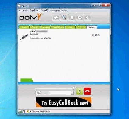 PoivY è un software VoIP decisamente meno noto di Skype ma non per questo poco conveniente, che permette di effettuare chiamate gratuite verso numeri italiani e internazionali per circa 300 minuti. Al termine della promozione (attiva subito dopo essersi registrati al servizio), consente di effettuare chiamate gratuite verso gli altri utenti del servizio e telefonate a prezzi molto convenienti alle utenze telefoniche italiane ed internazionali. È disponibile non solo per Windows ma anche per Mac OS X e varie piattaforme mobile. Scarica da qui.