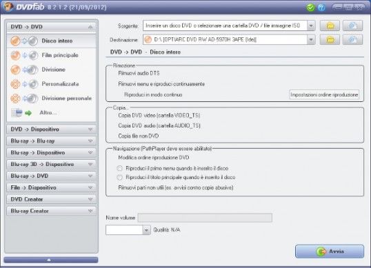 DVDFab HD Decrypter è un ottimo programma di masterizzazione per Windows disponibile gratuitamente (con funzioni limitate) attraverso il quale è possibile creare delle copie di DVD e Blu-Ray Disc salvandole direttamente sull'hard disk del computer. La masterizzazione dei dati copiati può essere puoi effettuata con altri programmi. È estremamente facile da usare e supporta tutte le più recenti protezioni anticopia di DVD e Blu-Ray permettendo di clonare anche i film e i giochi più recenti. Scarica da qui.