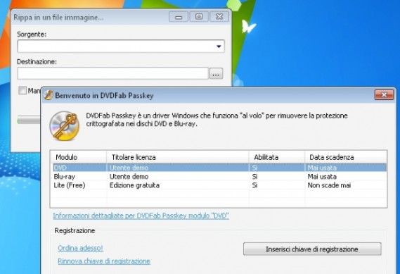 DVDFab Passkey Lite è un software gratuito sviluppato dalla stessa software house di DVDFab HD Decrypter che funziona in maniera analoga ad AnyDVD, ossia provvede ad eliminare le protezioni anticopia da DVD e Blu-Ray “al volo” consentendo ad altri programmi di masterizzazione che normalmente non supportano le protezioni anticopia di clonare film e giochi protetti. È estremamente facile da utilizzare e funziona in maniera completamente automatica dall'area di notifica di Windows. Scarica da qui.