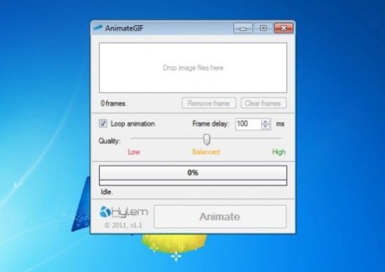 Come suggerisce abbastanza facilmente il suo nome, AnimateGif è un programma gratuito che permette di creare immagini animate in formato GIF, come quelle che si trovano spesso sui forum e sui siti umoristici. Utilizzarlo è un vero gioco da ragazzi: basta avviarlo (non richiede installazioni per funzionare), trascinare in esso le foto da trasformare in GIF animata e cliccare sul pulsante Animate. Permette di configurare vari parametri di output, fra cui la qualità dell'animazione finale, la velocità con la quale devono scorrere i fotogrammi e la modalità di riproduzione dell'animazione (se in loop o meno). Scarica da qui.