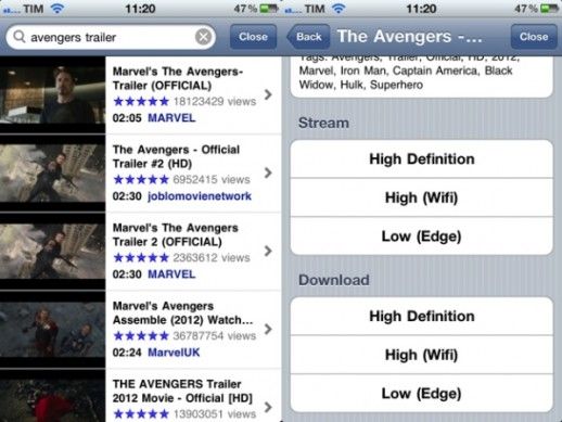 MXTube è una app gratuita che permette di scaricare video da YouTube su iPhone senza passare per Safari o altre applicazioni. Funziona in maniera totalmente indipendente ed è in grado di salvare i video scaricati direttamente sulla memoria del telefono. Per usarla, basta cercare il video da scaricare come si farebbe nella app predefinita di YouTube, selezionarlo dai risultati della ricerca e scegliere in quale formato effettuare il download: alta qualità, qualità media o bassa qualità. Oltre al download, consente anche la visione in streaming dei video facendo scegliere all'utente la qualità di riproduzione. Scaricabile solo tramite Cydia.