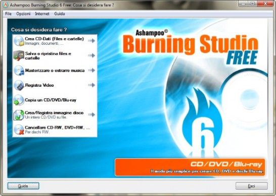 Ashampoo Burning Studio è uno dei migliori programmi di masterizzazione presenti attualmente sul mercato che unisce ad un'interfaccia utente estremamente curata e semplice da usare tutte le potenzialità di programmi più blasonati e costosi. Permette di creare CD e DVD di dati, creare backup dei dati presenti sul PC, masterizzare o estrarre brani dai CD audio, masterizzare DVD video, creare/masterizzare file immagine, gestire dischetti riscrivibili e duplicare CD o DVD. È disponibile anche in una versione a pagamento che offre maggiori funzionalità. Scarica da qui.