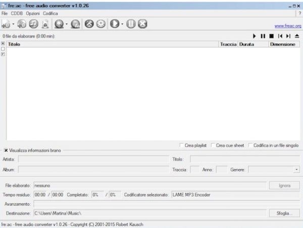Stai cercando un software che ti consenta di modificare i file audio intervenendo sul formato in modo tale da poterlo riprodurre senza problemi su altri tuoi dispositivi o magari per poterlo condividere più facilmente con i tuoi conoscenti? Si? Beh, allora ti invito a prendere in seria considerazione Fre:ac. Si tratta infatti di un programma gratuito che consente di convertire i file audio supportando una gran varietà di formati differenti (MP3, OGG, FLAC, AAC, WMA e molti altri ancora).