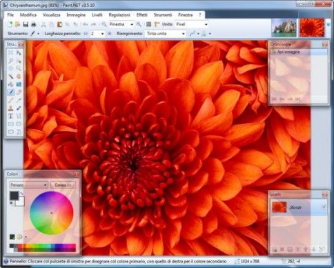 Paint .Net è un programma gratuito nato come versione riveduta e corretta del Paint di Windows (anche se non è prodotto da Microsoft) ma è presto diventato uno dei programmi per fotoritocco preferiti dagli utenti che non hanno esigenze particolari ma amano semplicemente "aggiustare" un po' le foto scattate con il cellulare o la macchina fotografica digitale.