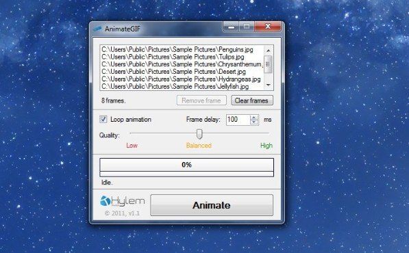 È davvero difficile immaginare programmi per GIF più facili da usare di AnimateGif. Si tratta, infatti, di un piccolissimo software gratuito che permette di creare GIF animate partendo da immagini statiche in vari formati in maniera davvero semplice e rapida. Basta trascinare le immagini nella finestra principale del programma, impostare la velocità e la qualità dell'animazione da ottenere tramite gli appositi campi e cliccare sul pulsante Animate per avviare la creazione della GIF animata. Per utilizzarlo, non è necessario eseguire alcuna installazione e funziona con tutte le principali versioni di Windows. Scarica da qui.