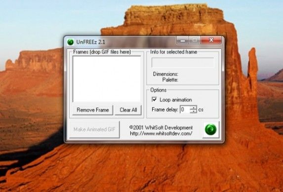 UnFREEz è uno di quei programmi minimalisti, compatti, che fanno una sola cosa ma la fanno alla perfezione. Entrando nel dettaglio, stiamo parlando di un programma in grado di creare GIF animate partendo da altre immagini in formato GIF. Per usarlo, basta trascinare le immagini da includere nella GIF nella finestra principale dell'applicazione, impostare il frame delay (ossia il tempo che deve trascorrere tra un fotogramma e l'altro), specificare se attivare o meno il loop (ossia la ripetizione dell'animazione all'infinito) mettendo il segno di spunta sull'apposita voce e cliccare sul pulsante con l'icona del software. Non necessita di installazioni per funzionare. Scarica da qui.