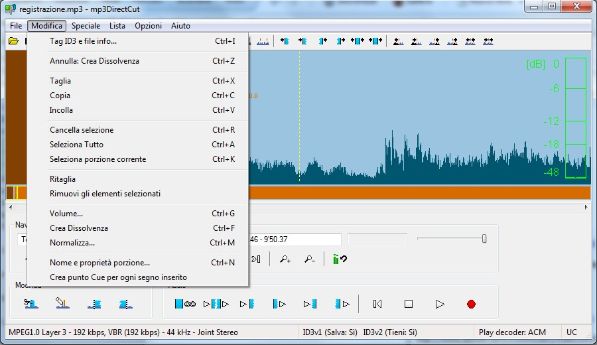 Piccolo, leggero e maneggevole, mp3DirectCut è il programma ideale per tutti coloro che desiderano modificare i file MP3 senza doversi destreggiare con soluzioni troppo avanzate o complicate per l'editing audio. Con mp3DirectCut è possibile tagliare, dividere ed unire mp3 con pochi click, cambiare il volume dei brani, modificare i tag mp3 ed applicare tante altre modifiche a questa tipologia di file agendo in modalità diretta. Questo significa che dopo aver apportato le modifiche desiderate, per salvare il brano in formato mp3 non occorre ricodificare il file. Gratis al 100%. Scarica da qui.