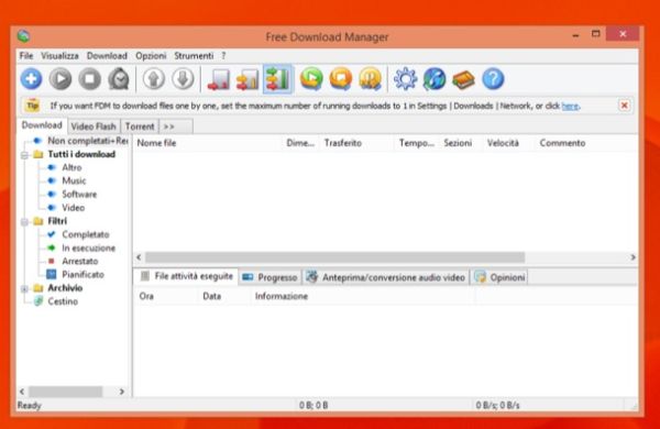 Free Download Manager è uno dei più apprezzati download manager per Windows che, grazie ad una tecnologia avanzata che suddivide in più parti il flusso dei dati di scaricare, permette di velocizzare il download dei file da Internet in maniera sensibile rispetto ai download manager inclusi nei browser. Si integra con tutti i principali navigatori Web, come Internet Explorer e Chrome, e dispone di funzioni avanzate, come il supporto alla rete BitTorrent. Scarica da qui.