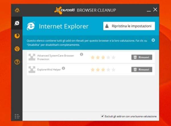 Quando gli speed-test non rilevano anomalie nella connessione Internet ma la navigazione risulta comunque lenta, è probabile che il proprio browser sia vittima di qualche componente aggiuntivo che ne impedisce il corretto funzionamento. Avast Browser Cleanup è una piccola applicazione gratuita e portatile (che non necessita di installazione per poter funzionare) grazie alla quale è possibile individuare in un battibaleno i plugin e gli addon malevoli presenti in Chrome, Firefox e Internet Explorer e cancellarli, in modo da tornare a navigare online al massimo della velocità. Scarica da qui.