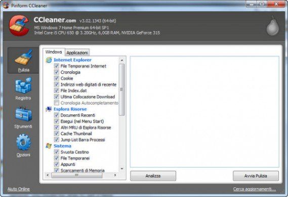 Uno dei programmi gratuiti per ottimizzare i sistemi Windows più famosi al mondo. Permette di cancellare i file temporanei e/o superflui dal disco fisso del PC, riparare gli errori nel registro di sistema e gestire i programmi impostati per l'esecuzione automatica all'avvio di Windows.