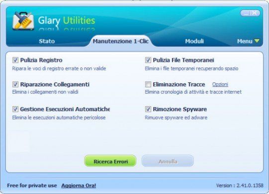 Elimina i file inutili dall'hard disk, pulisce il registro di sistema, elimina le tracce di navigazione in Rete, rimuove gli spyware e gestisce i programmi in esecuzione automatica bloccando quelli potenzialmente pericolosi. Tutto in un click. Scarica da qui.