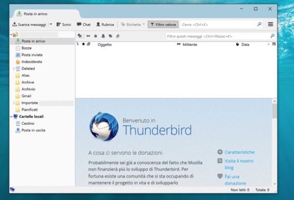 Mozilla Thunderbird è uno dei migliori programmi per posta elettronica disponibili in ambito gratuito. I suoi principali punti di forza sono la compatibilità multi-piattaforma (è disponibile per Windows, macOS e Linux), l'altissimo grado di personalizzazione e il supporto a tutti i principali servizi di posta elettronica. Il suo maggior difetto - se così vogliamo considerarlo - è la mancanza di una variante mobile per smartphone e tablet.