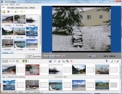 Bolide Free Slideshow Creator è un software gratuito per la realizzazione di slideshow fotografici, attraverso il quale è possibile creare facilmente presentazioni fotografiche complete di transizioni e colonne musicali. Supporta tutti i principali formati di file grafici, file audio ed ha un'interfaccia utente talmente semplice da usare che potrebbe usarla anche un bambino. Gli slideshow generati possono essere salvati in formato AVI, MKV, WMV ed anche sotto forma di video Full HD. Scarica da qui.