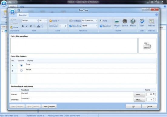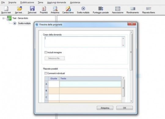 Question Writer è un altro dei programmi per questionari gratis disegnati su misura per insegnanti ed utenti che non vogliono perdere troppo tempo a creare quiz o questionari senza rinunciare alla qualità- Grazie alla sua interfaccia utente completamente in Italiano, permette di creare facilmente questionari a risposta multipla e di pubblicarli online con pochissimi click. La funzione di correzione interattiva permette poi di avere feedback immediati sui risultati dei test effettuati completi di suggerimenti e percentuali di realizzazione. Il programma è gratuito nella sua versione base ma offre una versione di test di 30 giorni della versione Pro. Scarica da qui.