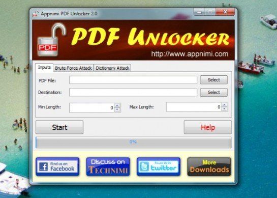 Appnimi PDF Unlocker è senza ombra di dubbio uno dei migliori programmi per sbloccare PDF disponibili per Windows. Pur essendo totalmente gratuito, non ha nulla da invidiare alle soluzioni commerciali e consente di scoprire le password d'apertura dei PDF protetti in base a due tecniche diverse: quella brute-force che prova tutte le combinazioni di password possibili e quella dizionario che prova a scoprire la password giusta in base ad un dizionario di parole. Supporta tutti i tipi di PDF e consente all'utente di impostare il numero minimo e massimo di lettere da cui è composta la password da indovinare. Scarica da qui.