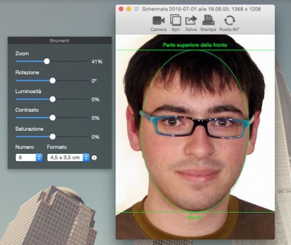 Dopodiché bisogna regolare gli altri parametri dell'immagine (luminosità, saturazione ecc.), bisogna scegliere il formato di documento per cui stampare la fototessera e bisogna indicare il numero di foto da stampare. Al termine della procedura, si può scegliere di stampare le fototessere, salvarle nel rullino di iOS o inviarle via email. Per saperne di più consulta la mia guida su come stampare foto tessera. Scarica da qui.