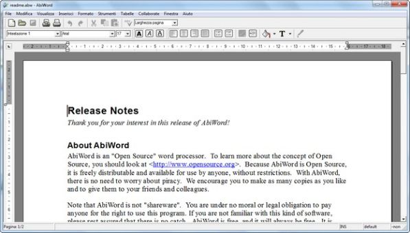 Abiword è la soluzione ideale per chi non ha bisogno di programmi per ufficio gratis di tantissimi tipi ma si accontenta solo di un buon software per la videoscrittura. Caratterizzato da un'interfaccia molto semplice ed elegante, lontana dall'esuberanza delle ultime edizioni di Microsoft Word, questo programma include tutti i principali strumenti per redigere documenti di livello professionale. Supporta pienamente i formati di file di Microsoft Office ed è completamente in italiano (compreso il correttore ortografico). È disponibile per Windows, Mac OS X e Linux, anche se quella per il sistema operativo di casa Apple non viene aggiornata da diverso tempo. Scarica da qui.
