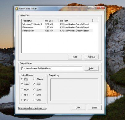 Come suggerisce abbastanza facilmente il suo nome, Free Video Joiner è un programma gratuito attraverso il quale è possibile unire film di vari formati e con diverse caratteristiche. Utilizzandolo, è possibile ottenere video unici in formati popolari, come AVI e WMV, oppure video ottimizzati per iPad, iPhone ed altri dispositivi portatili. Per ottenere questo tipo di risultato,il software necessita di effettuare sempre la riconversione dei video da unire. Anche se la sua interfaccia utente è completamente in inglese, risulta semplicissimo da usare anche per gli utenti meno esperti. Scarica da qui.