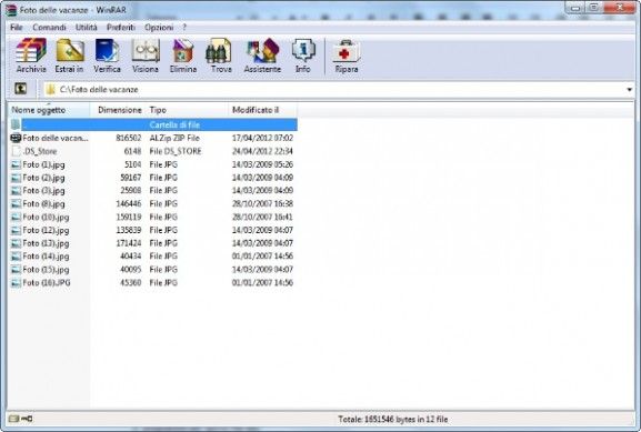 Un altro programma che non ha bisogno di presentazioni. WinRAR è uno dei più famosi ed utilizzati software per la gestione degli archivi compressi, praticamente l'unico a garantire il supporto in scrittura per la creazione dei file RAR. Supporta tutti i principali formati di archivi compressi, i file immagine ISO e si integra alla perfezione nella shell di Windows. Il software è a pagamento ma è disponibile in una versione di prova gratuita che permette di testarne tutte le funzioni per un periodo di tempo limitato. Al termine del periodo di test, il programma continua a funzionare ma mostra banner pubblicitari e non permette di sfruttare determinate funzioni avanzate, come la creazione di archivi protetti da password. Scarica da qui.
