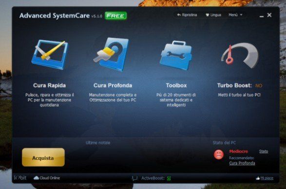 Celeberrima la sua modalità di manutenzione 1 click che ottimizza al meglio le prestazioni del computer in maniera del tutto automatica. Il programma è a pagamento ma è disponibile in una versione di prova gratuita della durata di 15 giorni. Scarica da qui.