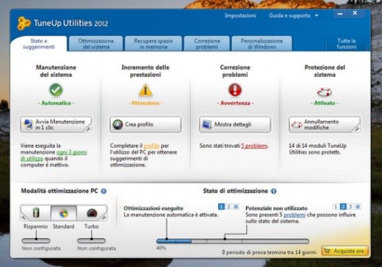 Il programma è completamente in italiano e dispone di una modalità 1 click che permette di ottimizzare tutti gli aspetti del sistema in maniera completamente automatica. È disponibile in una versione trial di 30 giorni. Scarica da qui.
