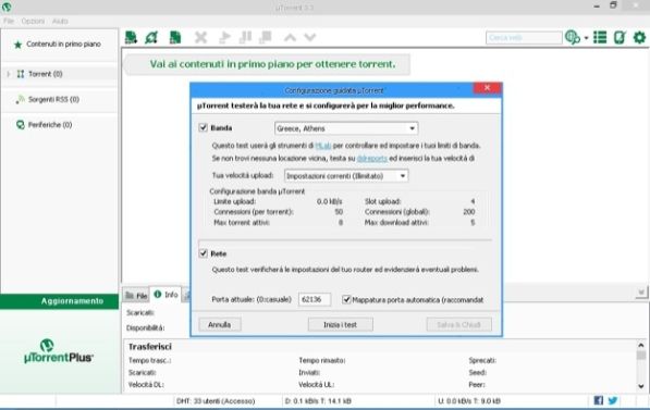 Strano ma vero, uno dei migliori programmi per velocizzare uTorrent è uTorrent stesso. Forse non tutti lo sanno, ma questo popolarissimo client per scaricare file dalla rete Torrent include una funzione di ottimizzazione automatica che regola le impostazioni di download ed upload del programma in base alla reale velocità della connessione in uso. Per sfruttare questa feature, basta selezionare la voce Setup automatizzato/Configurazione guidata dal menu Opzioni di uTorrent e cliccare sul pulsante Esegui test. Il programma provvederà a verificare prima la velocità di connessione e poi la configurazione del router regolando le impostazioni dell'applicazione in maniera intelligente. Scarica da qui.