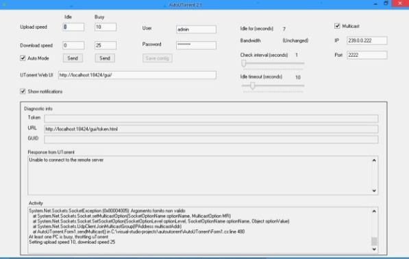 AutoUTorrent è un'applicazione gratuita per Windows che, come suggerisce abbastanza facilmente il suo nome, consente di regolare automaticamente la banda a disposizione dell'applicazione per scaricare i file dalla rete Torrent. Ciò non influisce direttamente sulla velocità di download aumentandola, ma aiuta l'utente ad ottimizzare il funzionamento del software liberando la banda quando occorre per altre attività. Per funzionare, AutoUTorrent richiede che venga attivato il pannello Web nelle impostazioni di uTorrent e che sul PC ci sia installata la versione 4.0 del .Net Framework di Microsoft. Scarica da qui.
