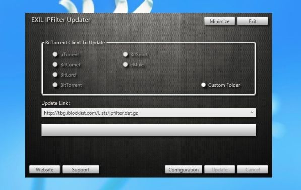 Così come eMule ed altri programmi per il download dalle reti P2P, anche uTorrent può utilizzare una blacklist per filtrare gli ip e i peer indesiderati, cosa che rende più svelti e sicuri i download. EXIL IPFilter Updater è un programma gratuito per Windows 7 e 8 che consente di aggiornare in maniera automatica il file IPFilter che si occupa dei filtri IP in uTorrent ed altri client P2P. È abbastanza semplice da usare anche se è meglio leggere attentamente le istruzioni relative al suo funzionamento prima di metterci mano. Richiede la presenza del .Net Framework 4.5 sul PC. Scarica da qui.