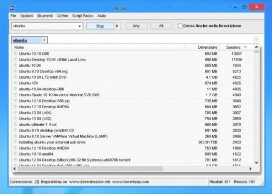 Come ormai noto, per scaricare velocemente dalla rete Torrent occorre scaricare file che abbiano molte fonti. Bit Che è un piccolo programma gratuito per i sistemi Windows che permette di cercare i file torrent con più seed e peer da molti siti Torrent contemporaneamente. Utilizzandolo e dando "in pasto" ad uTorrent i file trovati con esso, è possibile velocizzare sensibilmente i propri download. Scarica da qui.