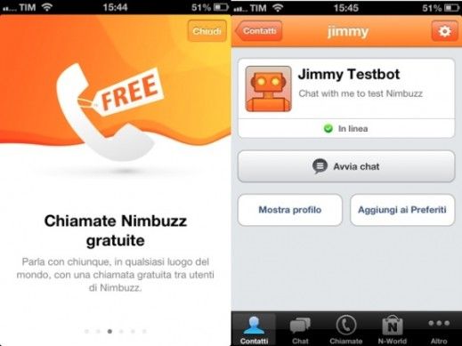 Anche se decisamente meno popolare di Skype e Viber, Nimbuzz è un programma VoIP estremamente interessante che consente di effettuare e ricevere chiamate e spedire/ricevere messaggi via Internet in maniera totalmente gratuita. L'offerta gratuita è limitata agli utenti del servizio, ma anche le chiamate verso i numeri internazionali sono disponibili e possono essere effettuate a tariffe abbastanza vantaggiose. Il programma è disponibile per tutte le principali piattaforme mobile (iPhone, Android, Windows Phone, BlackBerry, Nokia, Java, ecc.) e per i computer equipaggiati con Windows e Mac OS X. Supporta anche popolarissimi servizi di messaggistica, come Facebook, Gtalk, Yahoo Messenger ed altri ancora. Scarica da qui.