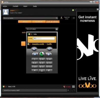 ooVoo è un programma per VoIP compatibile sia con i computer (Windows/Mac OS X) che con i dispositivi mobili (iPhone/Android) che permette di effettuare telefonate in tutto il mondo tramite Internet a tariffe molto vantaggiose e di chiamare/videochiamare i propri contatti online, se iscritti al servizio, in maniera totalmente gratuita. È completamente in italiano e si integra anche con Facebook, la sua interfaccia utente molto curata ed user-friendly lo rendono ideale per tutti quegli utenti che hanno bisogno della tecnologia VoIP per risparmiare qualche soldo sulla bolletta telefonica ma non sono particolarmente avvezzi al mondo tecnologico. Scarica da qui.