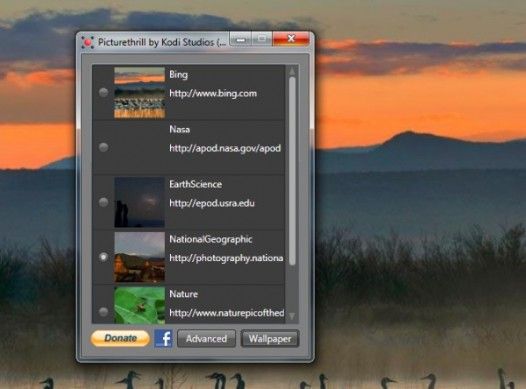 Picturethrill è un'applicazione compatta, leggera e molto ben fatta che permette di cambiare wallpaper a rotazione in maniera automatica scaricando gli sfondi da vari siti Internet molto famosi. Supporta il download dei wallpaper da Bing, dal sito della NASA, da National Geographic Online e da tantissimi altri siti Web che offrono ogni giorno wallpaper di qualità elevatissima ed è l'utente a scegliere quali di questi il programma deve usare per scaricare ed applicare gli sfondi. Funziona sia su Windows 7 che su Windows 8 ed anche se la sua interfaccia è totalmente in inglese, è facilissimo da usare per chiunque. Scarica da qui.