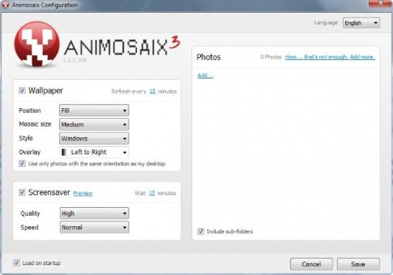 Animosaix è un programma gratuito per Windows che permette di creare wallpaper e screensaver in stile mosaico usando le foto salvate sul PC. In questo modo, si può ricostruire un'immagine da usare come sfondo del desktop usando come tasselli tutte le proprie foto preferite. Ogni mosaico può essere generato in pochissimi click ma avendo a disposizione molte impostazioni personalizzabili, come quella relativa alle dimensioni dei tasselli che devono comporre il wallpaper o lo screensaver. Il software è completamente gratuito e molto semplice da usare anche per gli utenti meno esperti. Scarica da qui.