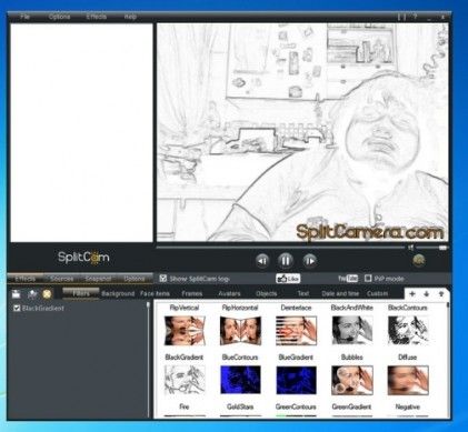 Si tratta di un programma gratuito molto popolare che permette di aggiungere effetti speciali alla webcam arricchendo le riprese con oggetti, maschere, effetti speciali e sfondi statici o animati in grado di interagire in tempo reale con l'inquadratura (es. le maschere seguono il volto dell'utente).