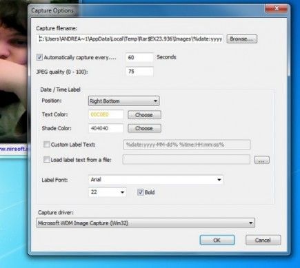 WebCamImageSave è un piccolo programma prodotto free prodotto da NirSoft che permette di trasformare la webcam in uno strumento di sorveglianza catturando fotogrammi di ciò che accade nei dintorni del PC e salvandoli sull'hard disk.