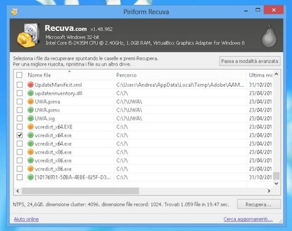 La prima soluzione per il recupero dati hard disk che ti consiglio di provare si chiama Recuva, si tratta di un'applicazione completamente gratuita che consente di recuperare foto, documenti, video e tante altre tipologie di file cancellati accidentalmente o persi in seguito a crash, virus e altri problemi occorsi al computer.