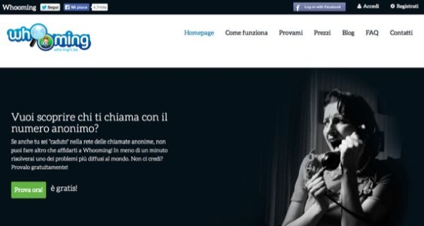 Hai ricevuto delle chiamate con l'anonimo sul tuo telefonino e vuoi scoprire chi ti sta contattando? Prova il servizio gratuito Whooming che permette di eseguire la ricerca numeri telefonici "privati" attraverso la tecnica dell'inoltro di chiamata.