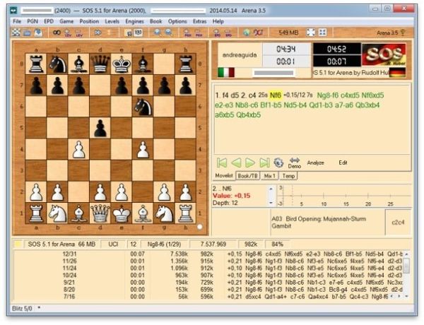 Se vuoi giocare offline, ti consiglio vivamente di scaricare Arena Chess, un avanzatissimo gioco di scacchi gratis che funge da interfaccia per molteplici motori scacchistici. Consente di giocare contro la CPU, di assistere a sfide tra motori scacchistici (CPU contro CPU) e di giocare online su vari network. È solo in lingua inglese, inoltre è pieno zeppo di opzioni ma basta solo un po' di pratica per imparare ad usarlo al meglio, te l'assicuro.